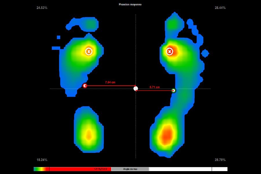 Cet outil met en évidence les zones de surcharge, les asymétries d’appui ou les troubles de compensation. C’est un examen fondamental pour comprendre l’origine de douleurs aux pieds, aux jambes ou au dos.